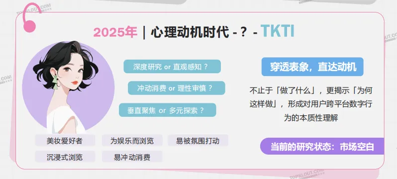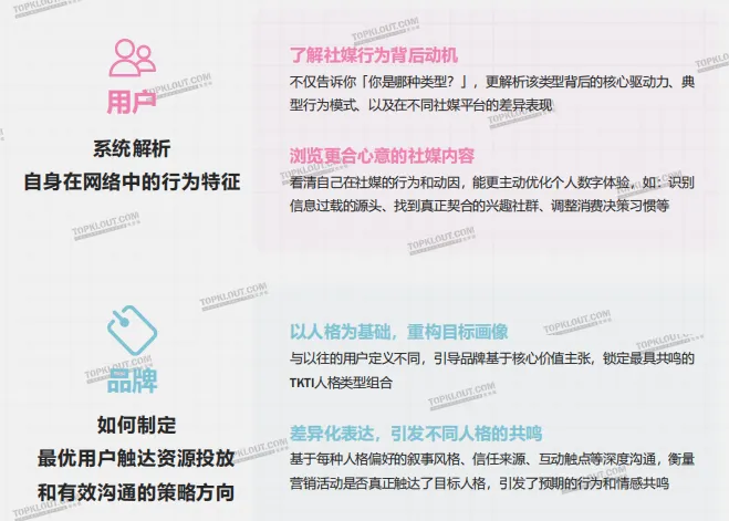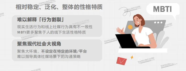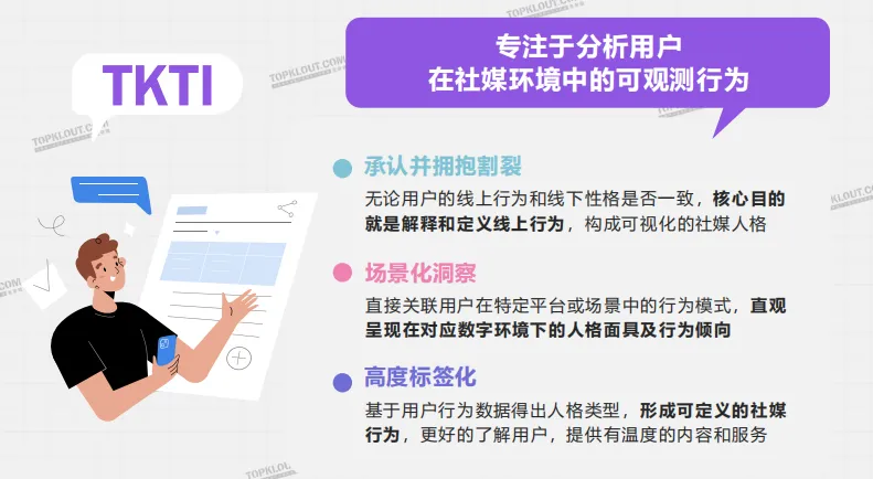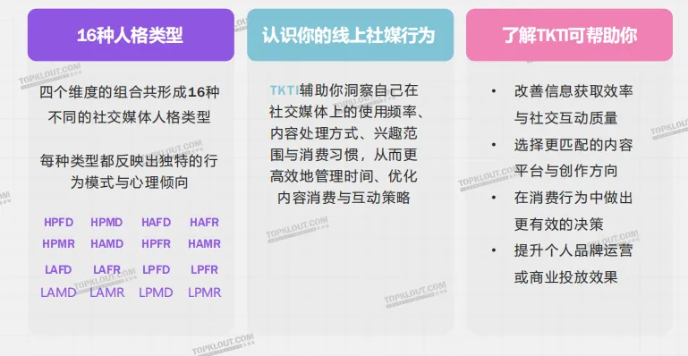 TKTI即线上社媒用户人格,与线下MBTI相辅相成,MBTI是系统的、全面的、泛化的