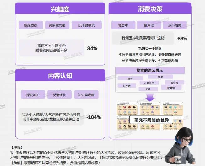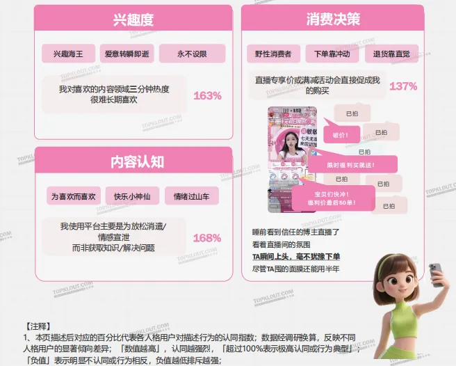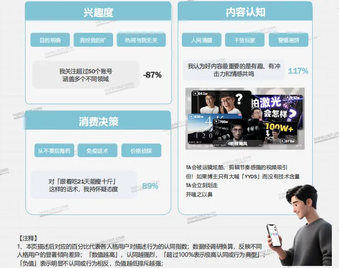 TGI数值体现用户倾向聚集度,非各人格在平台的占比