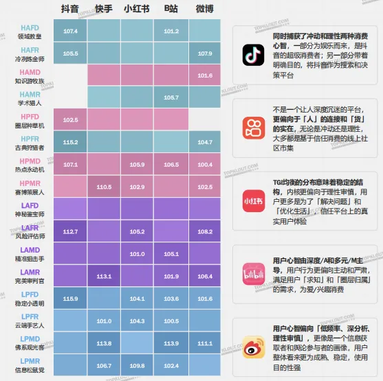 TKTI16型社媒人格— 五大主要社媒平台TGI展示