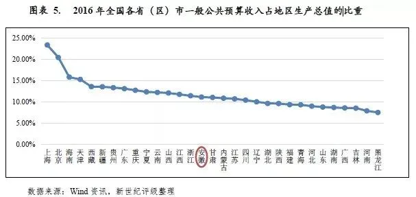 与经济总量相比,2016年安徽省一般公共预算收入占地区生产总值的比重为11.08%,位列全国各省(区)市第15位,单位地区生产总值的财政收入形成能力一般。