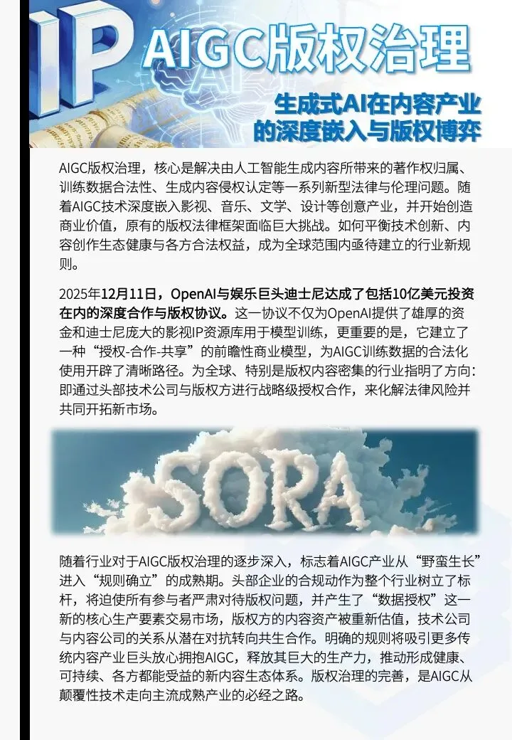 随着AIGC技术深度嵌入影视、音乐、文学、设计等创意产业,并开始创造商业价值,原有的版权法律框架面临巨大挑战。如何平衡技术创新、内容创作生态健康与各方合法权益,成为全球范围内亟待建立的行业新规则。