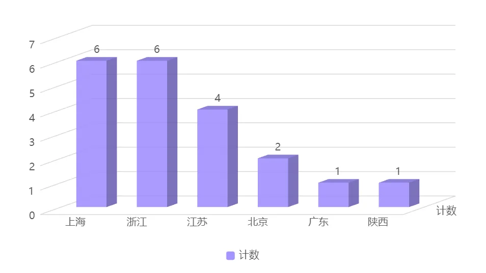 长三角地区主导:上海、浙江、江苏三省(市)共发生 16 起融资事件,占总融资事件的 64%,其中上海和浙江各 6 起(均占 24%),江苏 4 起(占 16%)。