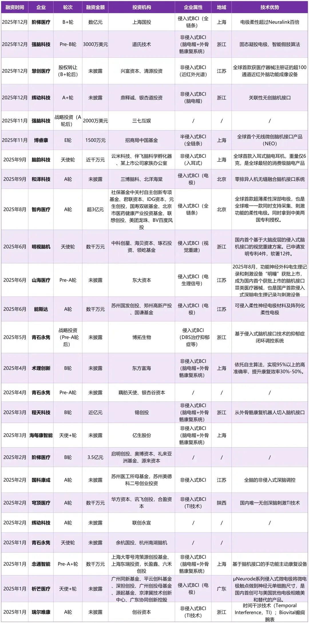 政府背景机构:上海国投等政府引导基金的参与,反映出政策对 BCI 行业的支持,有助于引导社会资本向关键技术领域聚集。
