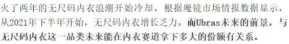 随着电商经济的发展与消费者线上购买渗透率的走高,网生新内衣品牌相继出现,依附线上营销走向他们对标的精准人群;在行业内集中度低的传统内衣市场中,新型内衣品牌群体入场。“内衣自由”成为必经之路,踏上这条路的新型内衣品牌借势打入市场。这其中,Ubras与蕉内业绩最为强劲。推波助澜促进的业务迅猛增长,让敏感的资本嗅到增长背后的巨大商机,Ubras于近日完成数亿元B+轮融资,由红杉资本中国基金领投,今日资本跟投。本轮融资将主要用于产品研发、供应链端升级、消费者购物体验优化等方面。此情此景在如今的中国被无数次上演,有品牌高光时刻的昙花一现,更多则是被吞没在时间的河流之中。从2020年起,内衣的营销概念在近几年发生剧烈变化,一票新消费内衣品牌打着对女性身体的正面认知与“点状胶膜技术”撑起半边天,技术打下无尺码内衣的出现为中国内衣市场洗牌,仅仅两年时间,这股热浪就迎来退潮。Ubras的无尺码内衣的崛起,曾摆脱传统内衣对线下零售试穿的依赖,适应了线上消费场景,不用选尺码就能下单的Ubras,无疑是多数内衣品牌中,购买决策链路最短的。借此,Ubras仅用1年就登顶2020年双11天猫内衣销量榜,年销售额突破15亿元。 无尺码内衣无法在技术应用上实现持续的革新,无尺码内衣在产品形态上过于追求“悦己”“舒适”的表达,忽视消费者对于 “聚拢”“防下垂”等技术层面的需求。此前,关于无尺码内衣的研究报告指出,超弹面料和点状粘合技术存在明显缺陷,如牺牲承托力、面料依靠弹性贴合用户胸部等,易造成小胸的空杯、大胸压胸和承托力不足、胸型不够美观等问题。无尺码内衣市场存在天花板,款式升级空间不大,用材和塑形等方面存在空间,软支撑、软钢圈仍是市场主流。追逐流量,砸钱营销,确实能够让一个品牌从0跑起来,但是决定能走多远的,是产品能否成就品牌。根据艾瑞咨询发布《内衣研究报告》显示,收副乳、防下垂以及聚拢提升等传统功能仍然是消费者选购内衣产品时的重要因素之一,在未来,内衣消费需求将是功能性与舒适性、美观性并存的。长久以来,由Ubras带起的无尺码内衣将一个尺寸适用于所有女性的内衣需求加强,而实际上并未真正做到“尺码”自由,反而让消费者在穿搭无尺码的过程中发现自身对内衣选择的“细分”需求与“场景”需求。日趋多元的需求催生出诸多垂直细分化的内衣品类,细分类目之间面向的人群和场景各自独立。从报告来看,以功能性“聚拢、防下垂”兼具舒适性“无痕、不透”的需求依旧强烈,因而,相较于推出一款“万金油”产品,不如静下心来研究如何在产品上做到做到最大程度在设计中满足人体工学,在精准痛点中吸引精准人群,建立精准圈层,通过该圈层不断增加消费者认同。诺贝尔经济学奖获得者赫伯特·西蒙 当今时代互联网的演变,加快推进了信息来源的多样化与去中心化。“随着信息的发展,有价值的不是信息,而是注意力。”渠道与平台的红利已消失,只有优质内容才能留住消费者。对此,由以往KOL所主打的单点带动多点的营销消费已经不能再说服常常在互联网上冲浪的消费者。过量的营销内容充斥着整个平台,他们引导大众消费,甚至无意识上瘾。过多的单点红人营销会为用户带来“反感”情绪,如今的消费者,需更多程度参与到品牌心智的建立中,与品牌共创故事,在共创的过程中寻找价值与情感链接。自2020年起,内外以“NO BODY IS NOBODY”开启女性自我认同的相关探讨时便赢得关注,从“没有一种身材,是微不足道的”到第二年的“微而足道,无分你我”,基于品牌所涉及的女性话题进行再诠释而导致热度持续升级,今年,以“身心之路,见微知著”的主题细腻呈现女性群体身上独特的力量与勇气,记录女性觉醒与成长的全过程。内容与故事的独特性,是新消费品牌在竞争下半场吸引用户的重要出口。