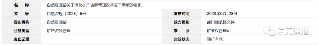 自然资源部关于深化矿产资源管理改革若干事项的意见
