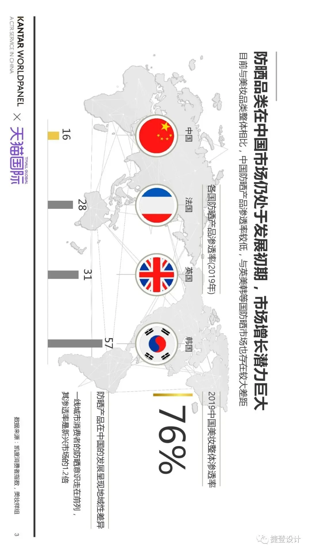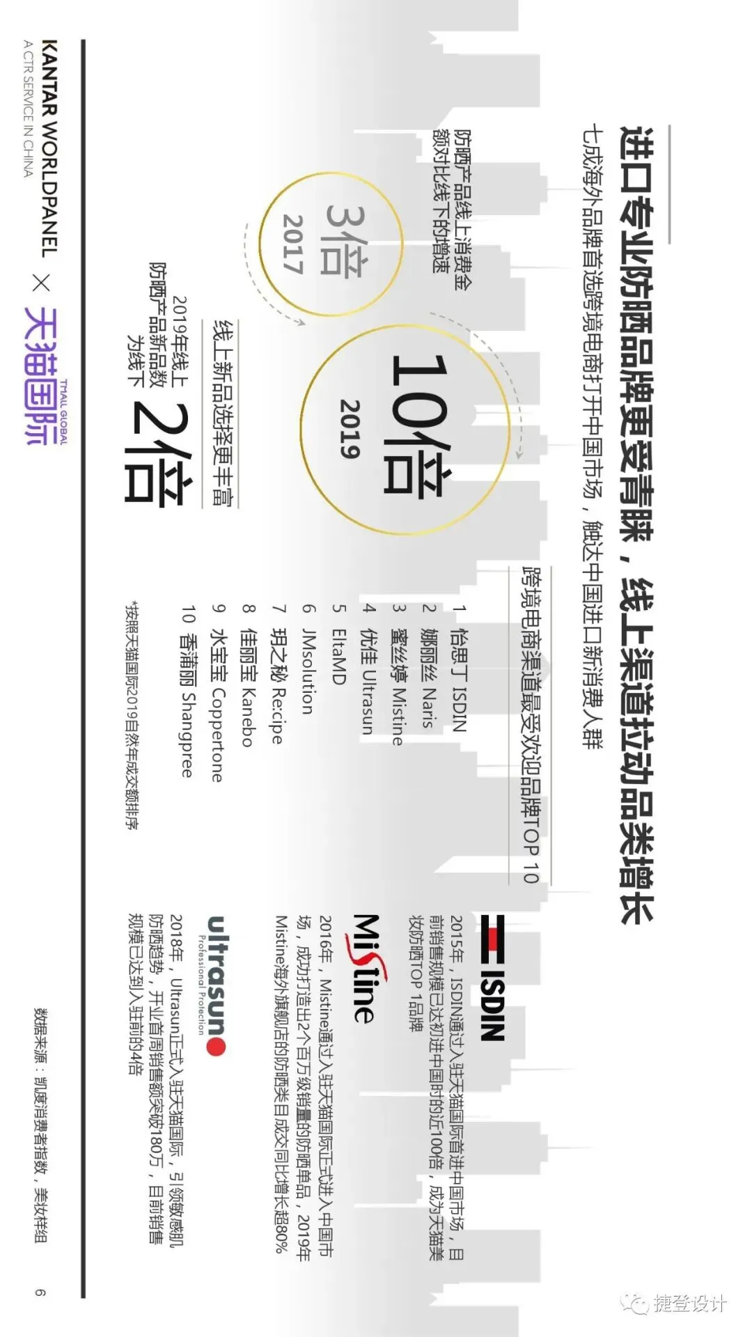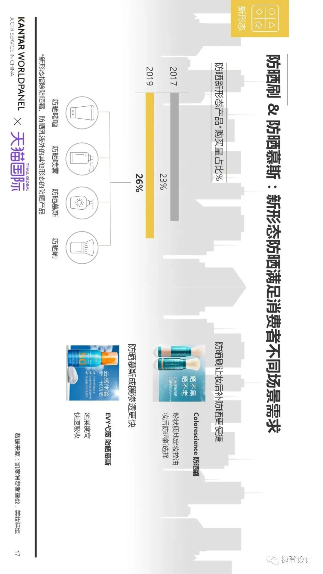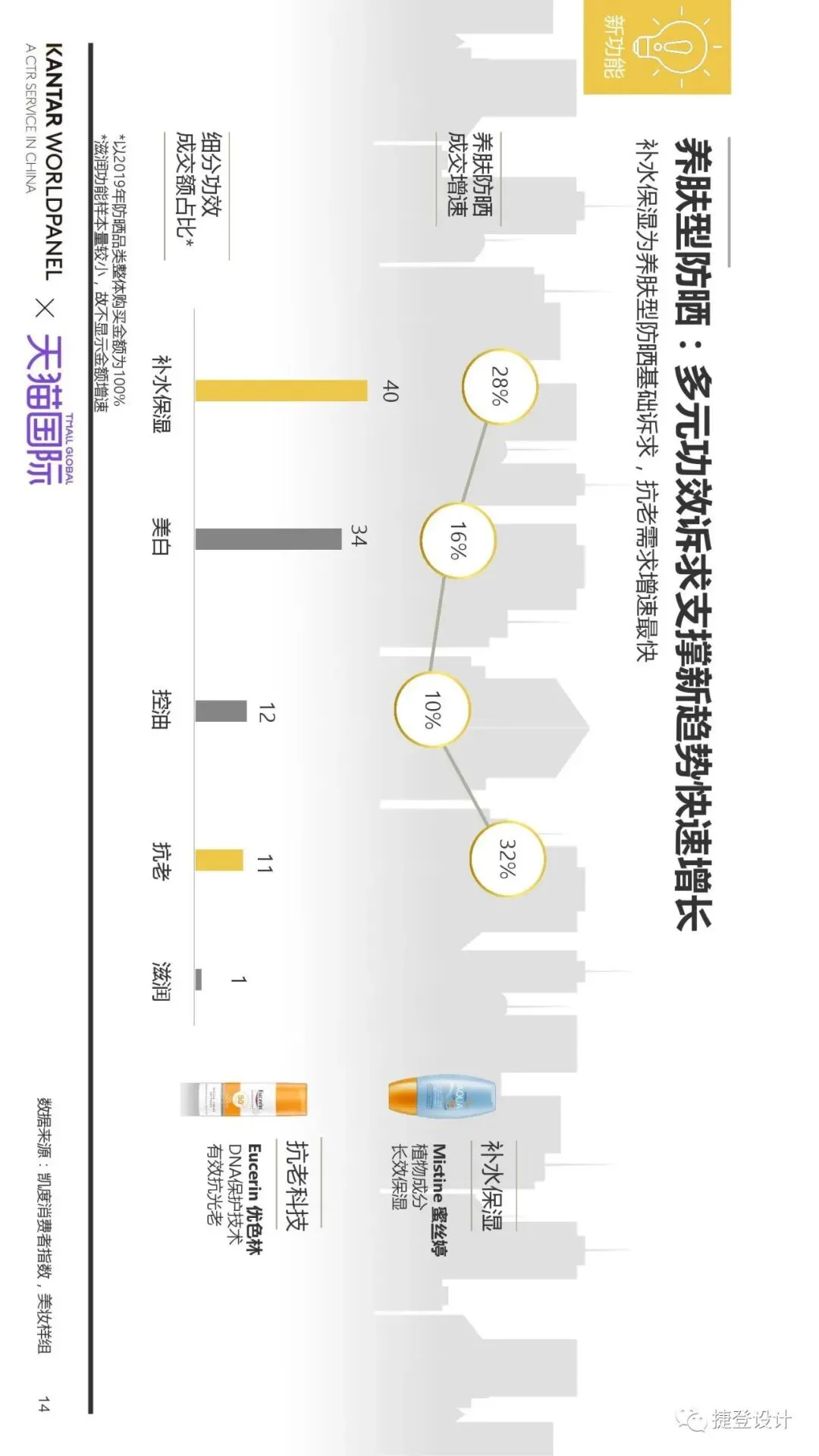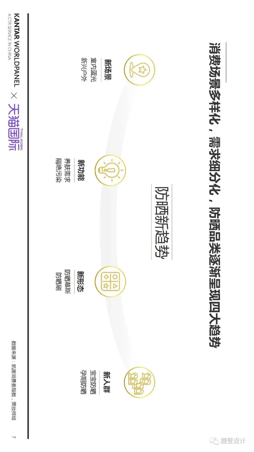 导读:随着国内消费者防晒意识快速崛起,细分需求涌现,防晒市场向新场景、新功能、新形态、新人群四大方向发展,抗蓝光、补水保湿、抗老、抗污染等防晒细分需求涌现。我们特转载由捷登公众号编辑,天猫国际&凯度的这份洞察报告,供优品系统内的采供朋友们参考: