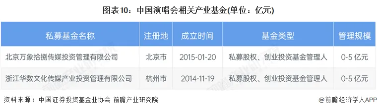 6、演唱会行业的产业投资基金较少