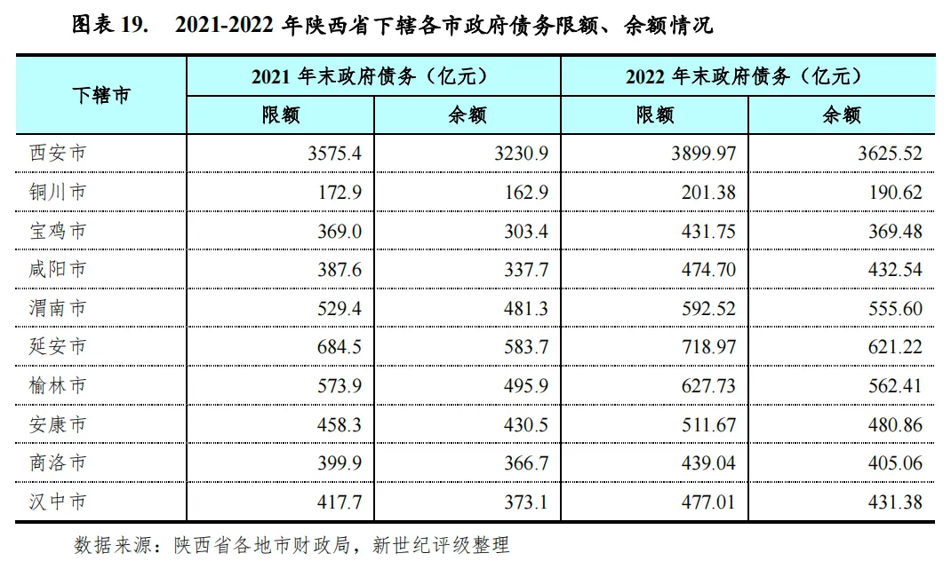 三、陕西省及下辖各市债务状况分析