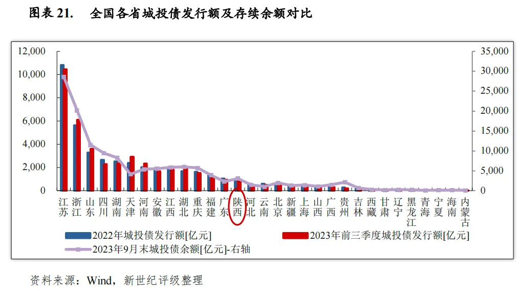 [3]城投债统计中,渭南市城投债余额包含华阴市和韩城市,榆林市城投债余额包含神木市。