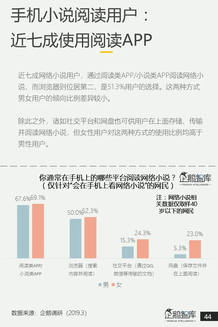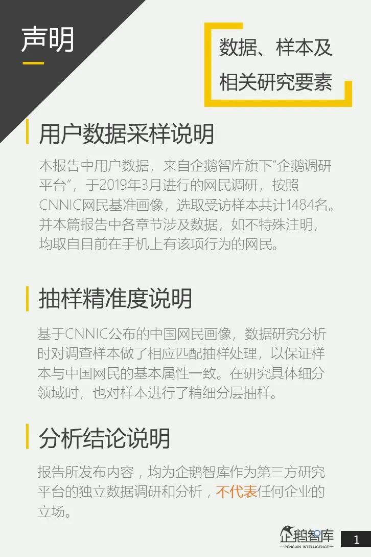 企鹅智库按照CNNIC网民基准画像,通过企鹅调研平台选取受访样本共计1484名手机网民,并在每一个细分领域研究中,对样本进行了抽样,最终发布了这份《互联网第一战场:2019泛内容消费趋势报告》。