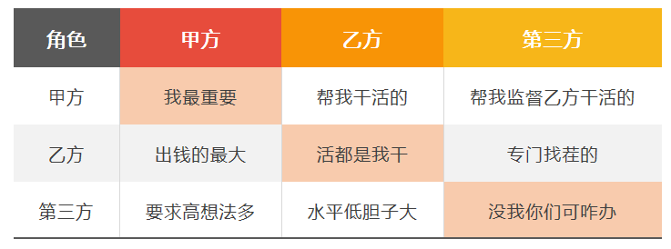 表3-不同相关方中的彼此:Z方(列)眼中的Z方(行)