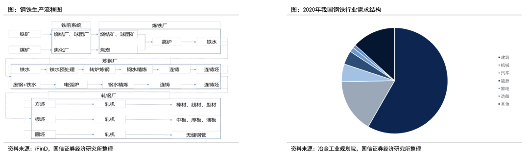 钢铁行业是典型的基础材料行业,是黑色产业链中重要的中间环节。其上游依托铁矿石、煤炭、废钢、铁合金等原材料的供应,下游为建筑、汽 车、机械、船舶、家电等行业提供基础材料,辐射范围广泛。