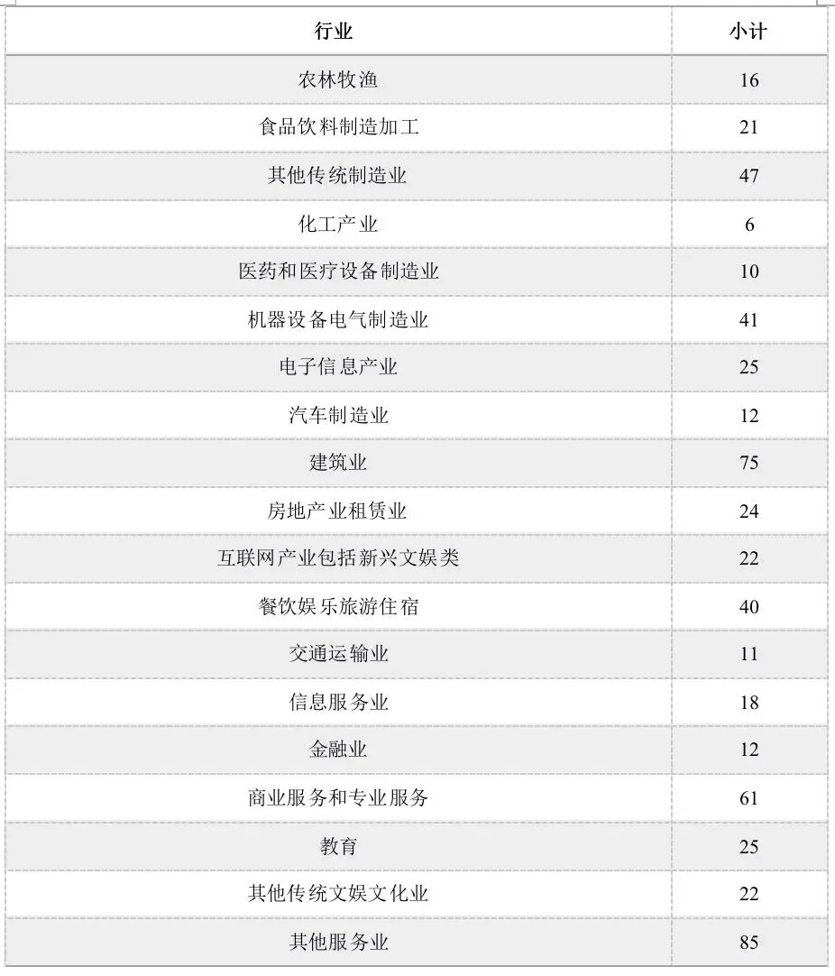 表1:企业的行业分布