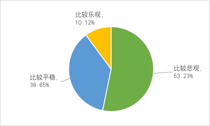 对疫情结束后的发展预期不容乐观。在问及疫情结束后的发展前景时,53.23%的企业认为比较悲观,36.65%的企业认为比较平稳,10.12%的企业比较乐观,见图4。