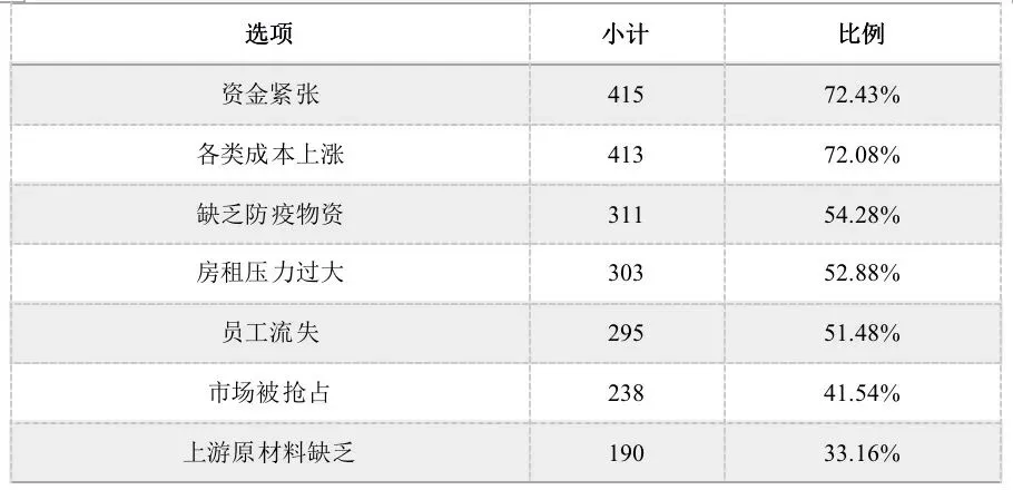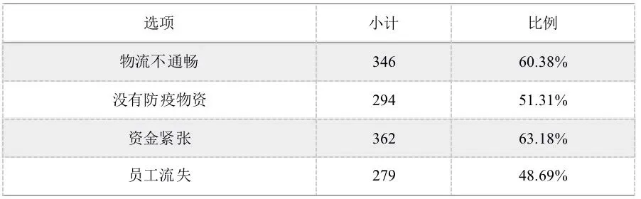 在对复工方式进行政策建议之前,需要充分了解企业复工面临的主要困难。表3是问卷调查的结果。