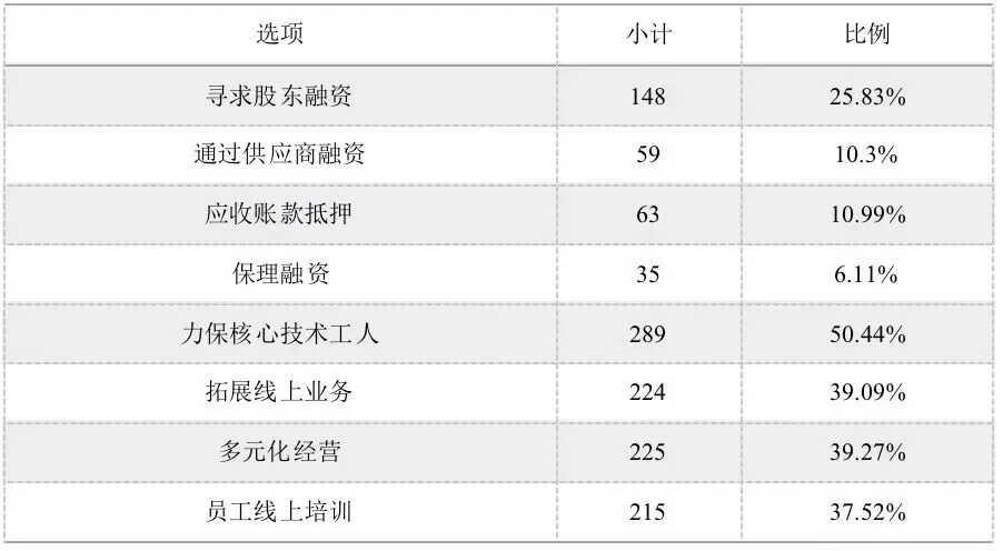 表5:企业在疫情中开展的生产自救行为