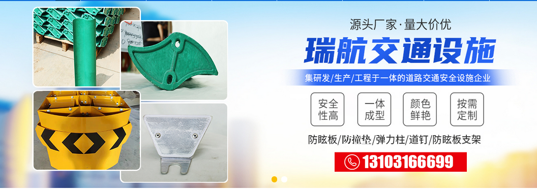 公司主营产品:玻璃钢/合金钢/钢质/塑料防眩板、防眩板支架、活动护栏、防撞垫、PVC片式轮廓标/钢质片式/附着式轮廓标、道钉、爆闪灯、柱帽、防撞桶、水马等。公司产品检测,各项指标均符合国家标准。广泛应用于全国多条高速及高等级公路,并出口到美国、俄罗斯等十多个国家和地区,以质量的稳定性、可靠性和实用性得到客户一致的认可和赞誉。