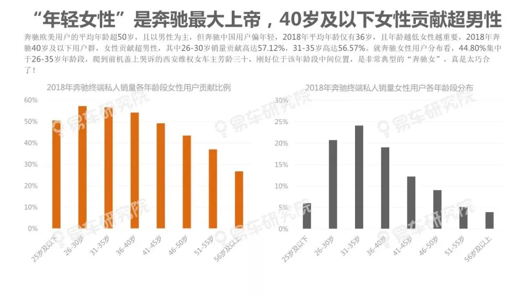 女性不仅对中国车市贡献小幅增加,而且消费质量十分突出。2018年女性用户贡献比例从中国品牌到海外普通品牌再到豪华品牌依次为22.80%、31.18%、44.07%,呈现“品牌越高端女性用户占比越高”