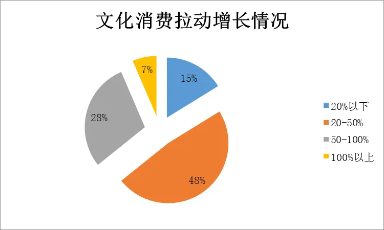 数据来源:中国旅游研究院&上海创图公共文化和休闲联合实验室从消费动机来看,城镇居民对于增长知识、提升修养和亲子育儿的文化体验需求更高,愿意为更高的文化体验需求买单,城镇居民文化消费500-1000元占比37.27%,1000元以上消费占比22.83%。农村居民文化消费500-1000元占比30.84%,1000元以上消费占比15.90%,100元以下消费占比18.82%。未来农村文化休闲市场开发,还需要在提高居民收入的基础上,从发展农村公共文化事业,激发文化需求角度着手。以上海文化云为例,目前, 超过800家四级居村文化站通过“文化上海云”平台发布活动,仅上半年的增幅就为2018年的2倍,文化服务效能进一步提升。2019上半年,居民参观免费场馆、观看演出或电影时,对购物、餐饮、交通等相关消费的拉动作用显著。85%左右的受访者认为,文化消费可带动购物、餐饮、住宿、交通等相关消费增长20%以上;35%以上的受访者认为文化消费可带动相关产业消费增长50%以上。免费文化场馆参观的消费场景中,75%左右的受访者表示购物、餐饮、交通等领域人均消费主要集中在“50-200元”,15%左右的受访者人均消费200元以上。综合2019年上半年调查数据,华北、华东地区文化消费热情更高,文化消费在1000-1500元和1500元以上的比重更高。
