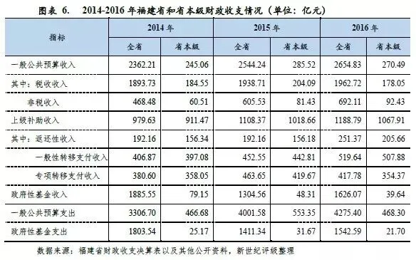 财政实力:凭借良好的产业基础,福建省财政收入处于全国中上游水平,2016年福建省一般公共预算收入为2654.83亿元,同口径[1]增长7.0%,高于全国平均水平(4.5%),其中税收收入为1962.72亿元,税收比率73.93%,财政收入稳定性较好;受房地产市场带动,政府性基金收入出现显著回升,2016年福建省政府性基金收入为1626.07亿元,同比增幅达24.6%;此外,2016年上级补助收入为1188.79亿元,福建省财政收支平衡性较好。