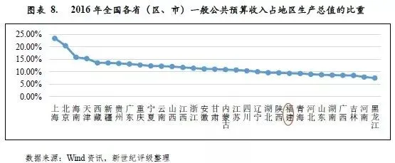 与经济总量相比,福建省一般公共预算收入占地区生产总值的比重较低, 2016年,福建省一般公共预算收入占地区生产总值的比重为9.31%,位列全国各省(区、市)第23位,排名靠后,单位地区生产总值形成财政收入的能力相对较差。