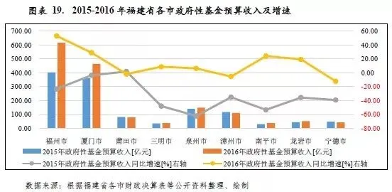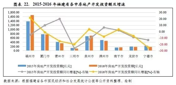 受一带一路政策惠及影响,2016年福建省下辖各市以土地出让收入为主的政府性基金预算收入有所回升,但受宏观调控及去库存影响,各市房地产开发投资景气度持续低迷。