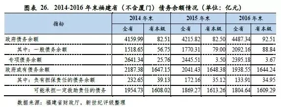 债务状况:政府债务方面,由于基础设施建设等方面的投入,福建省形成了较大规模的政府性债务,但随着地方债务管理的规范,福建省地方政府债务增速控制较好,处于全国中游水平。截至2016年末,福建省(不含厦门)政府债务余额4487.34亿元,同比增长6.44%,债务规模处于全国一般水平,厦门市2016年末政府债务余额为478.91亿元。目前全省存量债务置换接近尾声,新增债务严格限额管理,总体债务风险可控。