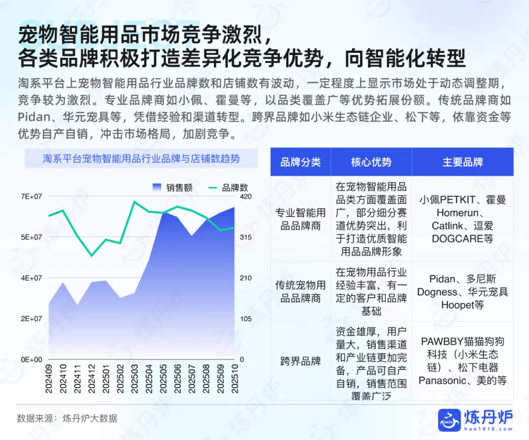 2025年宠物行业迎来国产主导新格局,上半年国产品牌销售额占比达67.2%,市场竞争从头部集中转向多元化。猫犬食品、用品、医疗保健构成核心赛道,其中食品类以38.3%的销售额占比领跑,智能养宠用品、处方粮等细分领域增长显著。跨界融合成为新风向,服饰、家电品牌纷纷入局,许翠花、鲜朗等标杆品牌凭借精准策略实现破局,推动行业向专业化、规范化、创新化进阶,契合当下育儿式养宠的消费升级趋势。
