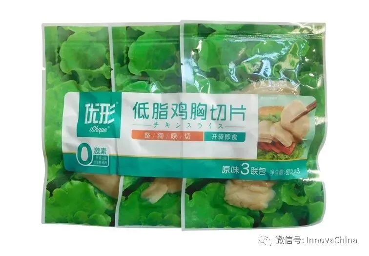 一款即食鸡胸肉产品,宣称包括低脂、饲养过程中不使用激素。