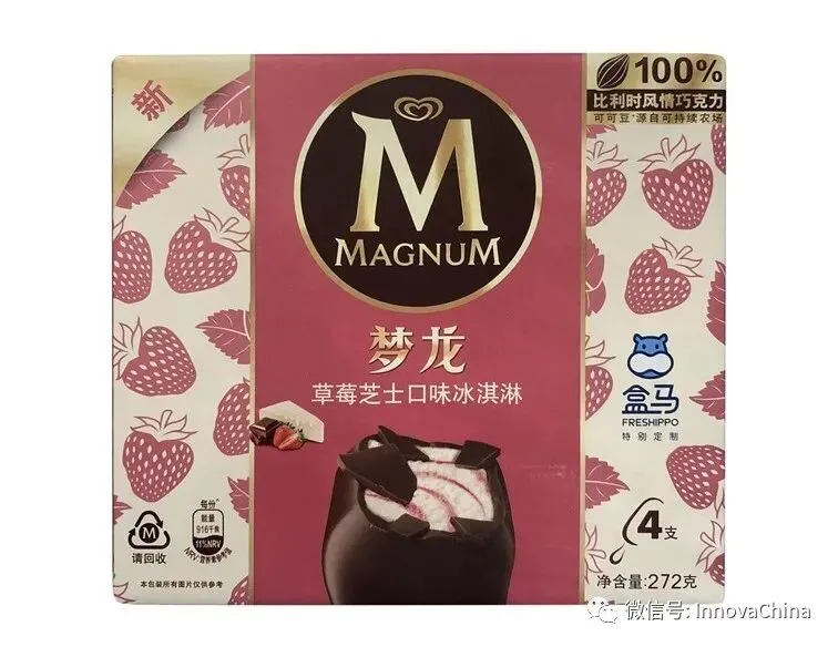 产品宣称符合消费者对原料透明度的要求,特别说明产品添加了奶粉,而不是液体牛奶。其他宣称还有低糖、进口奶源和FSC认证。