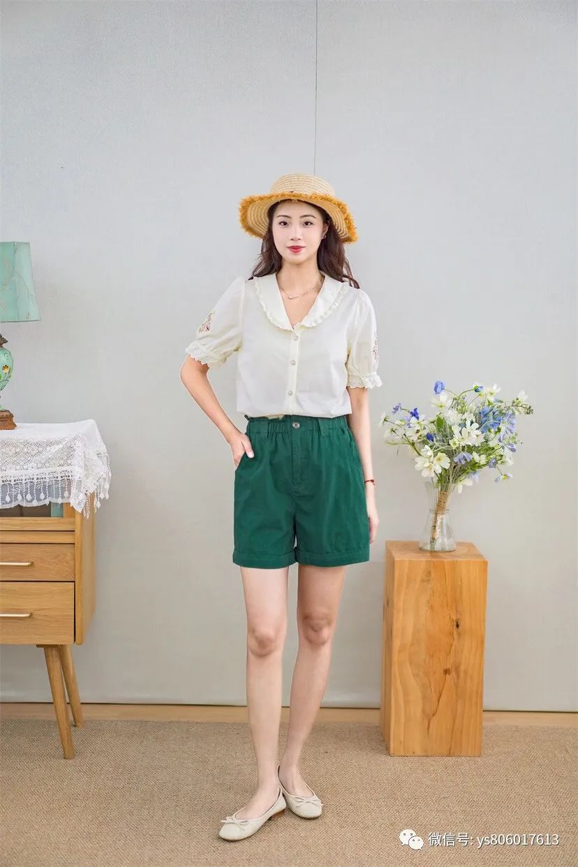 娃娃领设计,搭短裤、搭半身裙都好看的!