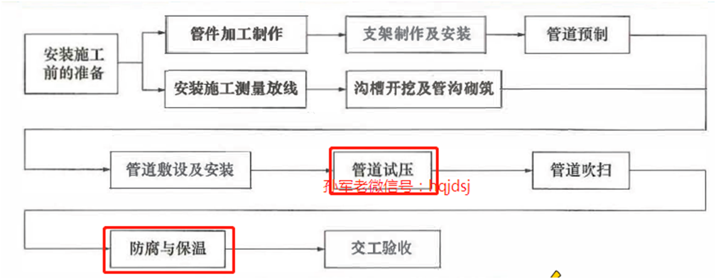 【解析】孙军解析,P90,管道安装工程一般施工程序