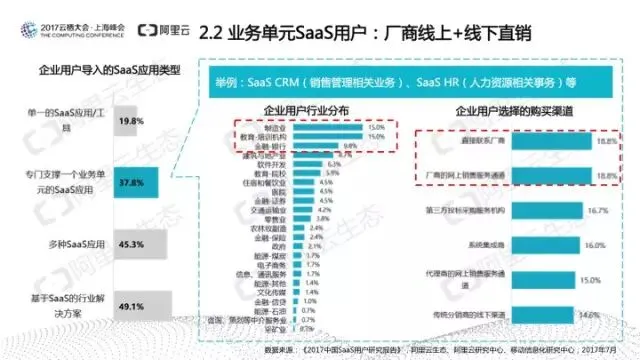 本篇《2017中国SaaS用户研究报告》由阿里云生态、阿里云研究中心、移动信息化研究中心联合数百位SaaS合作伙伴共同发布。