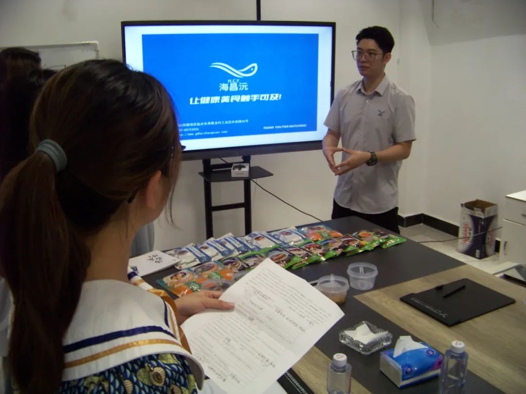 我们队伍跟随接待人员参观了企业的人工养殖池和加工场,对鱼类预制菜有了进一步的现实接触和了解。