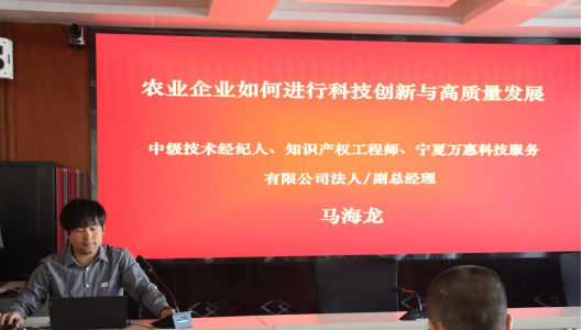 中国是一个农业大国,也是世界重要的粮食生产国。农业现代化和农民收入的增长与科技创新密切相关。要实现农业现代化,必须提高农业科技创新能力。8月16日上午,2023年高素质农民创业创新培训班邀请宁夏万惠科技服务有限公司副总经理、中级技术经纪人、知识产权工程师马海龙以《农业企业如何进行科技创新与高质量发展》为题开展授课,在农业供给侧结构改革的背景下,深入分析了我国农业科技创新存在的问题,提出了加强农业科技创新能力的对策,通过案例分析讲解了农业企业如何进行专利申请和项目申报。通过授课,学员们进一步了解了我国农业科技创新现状和目前农业科技创新的重点领域,提高了对农业企业发展的实质认识,树牢了科技思维、提升了创新素养,为推动农业企业科技创新与高质量发展提供了理论指导和借鉴。