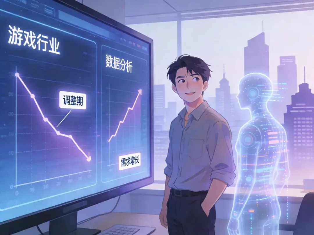 记得表弟本来想转游戏策划,觉得挺有前途。但 AI 超级员工给他做了行业分析后发现,国内游戏行业正处于调整期,竞争激烈,需求收缩。
