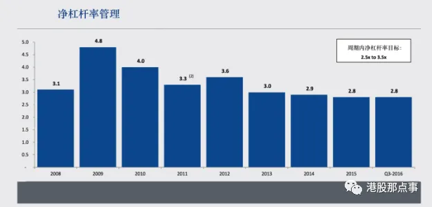 在公司的财务报告中我们可以看到虽然债务总量飞起,但是几年来其“净杠杆率”(net leverage ratio,以资产负债表中去除现金以外的总债务除以近十二个月的EBITDA来计算)却是节节下降。还是那句话,此类野蛮生长模式要玩得转,公司EBITDA或者现金流一定要六六六。