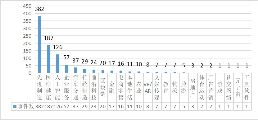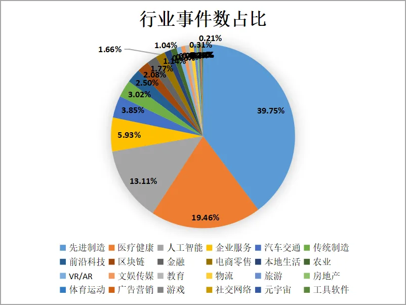 据公开信息统计,2025年9月1日至9月30日,国内共完成融资961笔。其中,先进制造完成融资382笔,占据行业热门位置,占总投资的39.7%;医疗健康行业排名第二,完成融资187笔,占总投资的19.4%。排名第三的是人工智能行业,完成融资126笔,占总投资的13.1%。