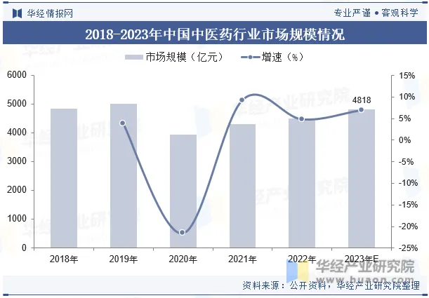中医药在治未病、辨正施治方面逐步被社会大众认可,推动品牌中药发展。在国家政策的支持、居民收入水平的增长以及人民健康意识增强等因素的推动下,我国中医药行业市场规模呈现不断增长的趋势。据数据,2021年我国中医药市场规模达4302亿元,预计2023年其市场规模将进一步增加至4818亿元。