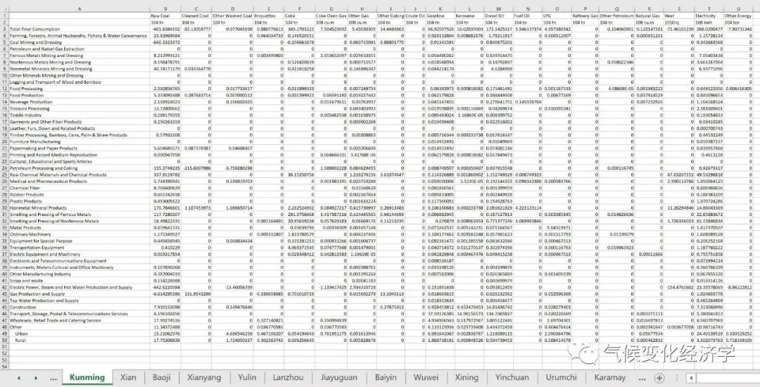 • 能源消费数据:182城,2010年47部门,20能源品种