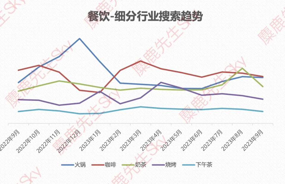 其他的趋势较为平缓,但火锅有小幅度上升趋势。