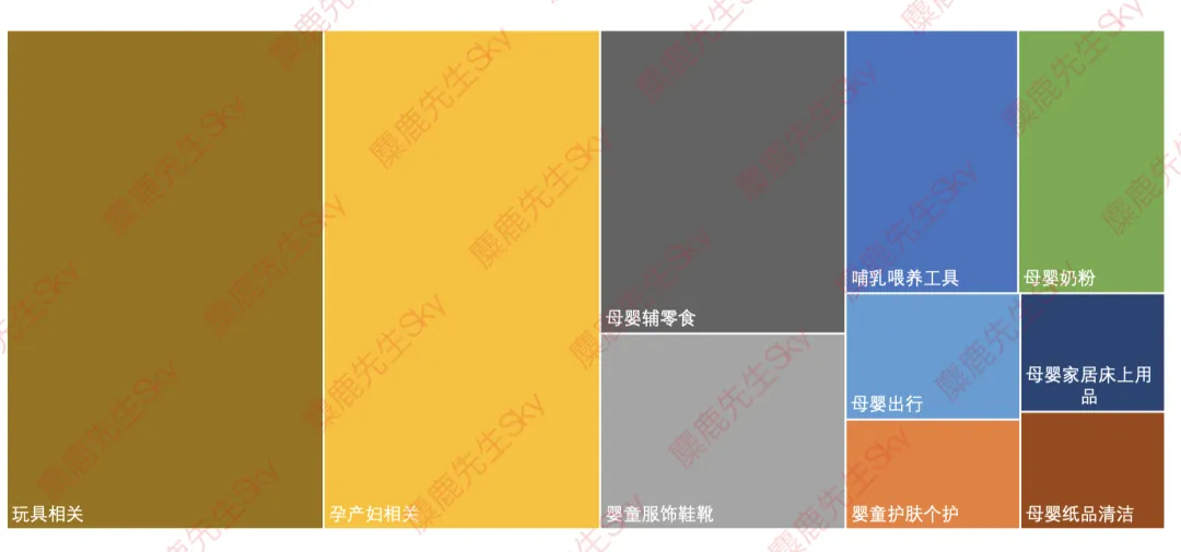 母婴类目细分下来,玩具(含绘本)、孕产妇相关、母婴零食辅食成为了用户重点关注的三大热门类目,母婴服饰重回第四名位置。