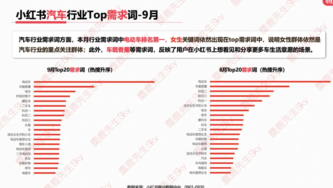 对比近两个月的热搜词,基本上差不多,女生词是绝对的主力,同时,电动汽车的用户搜索占比较高。