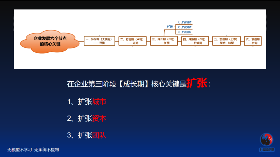 在牛商年会中,我分享了企业成长的六个节点,在每个阶段,重点都不一样。