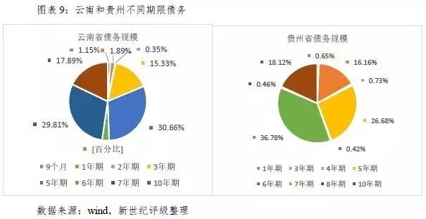 (三)云贵两省债务负担均较重,负债率和债务率均较高,特别是贵州省。但是由于投资周期长以及发行新债置换债务等原因即期偿还压力较小。