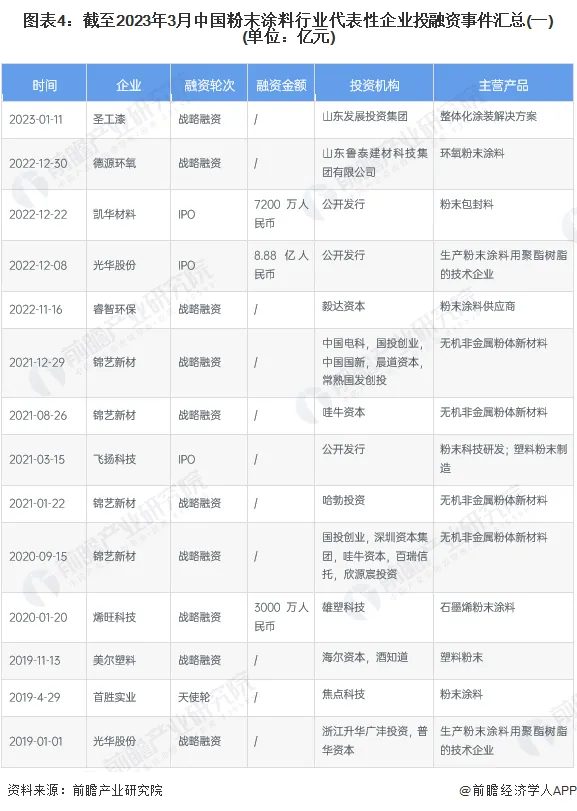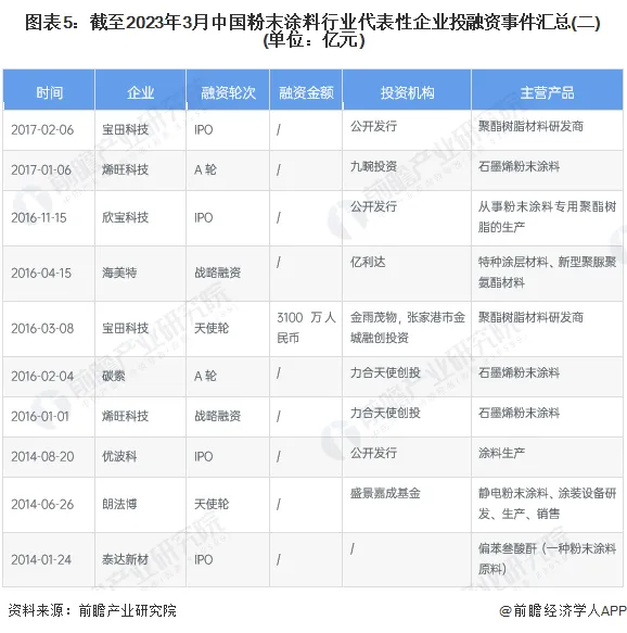 本文核心数据:中国粉末涂料行业融资整体情况;中国粉末涂料行业投融资单笔融资情况
