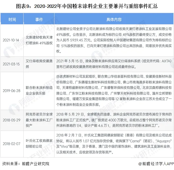 4、粉末涂料企业兼并重组情况