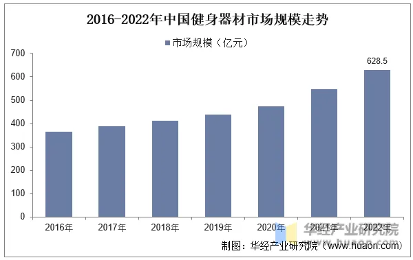 因为人们对健康的意识逐渐增强以及受疫情的直接影响,中国网民健身方式发生改变,饮食瘦身、居家健身兴起。健身器材以及健康瘦身食品迎合当下趋势,健康瘦身行业发展空间广阔。据数据显示,中国健身器材市场整体保持稳定增长态势,2022年中国健身器材市场规模达628.5亿元。