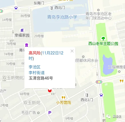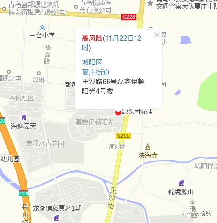 22日12时,城阳、李沧均有新增高风险区,如下。