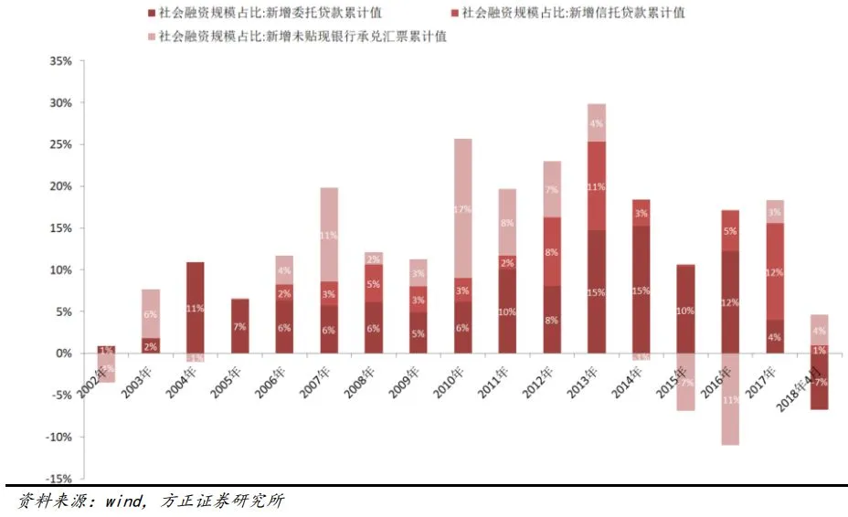 图:历年新增非标资产结构变化较大,2018年以来负增长